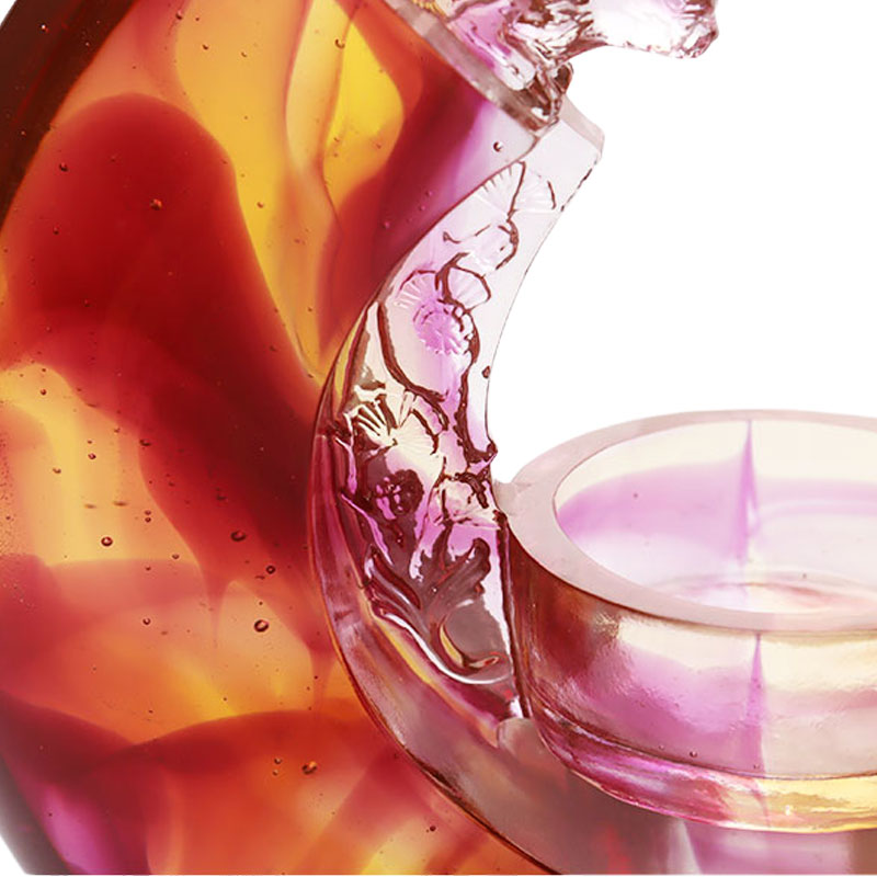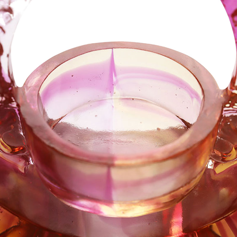 유색 유약 소재는 촛대에 몽환적인 질감을 더해줍니다. 그 색깔은 일몰처럼 아름답습니다. 빨간색, 노란색, 보라색이 서로 섞여 있고 흐르는 색상은 이 멋진 순간에 시간을 정지시키는 것처럼 보입니다. 각 색상의 변화가 자연스럽고 매끄럽게 표현되어 유색유약 특유의 매력을 보여줍니다. 촛대 모양은 양쪽이 초승달 모양으로 디자인되어 있고, 부드러운 선과 긴장감이 마치 우아한 리듬을 말해주는 것처럼 독창적입니다. 상단의 절묘한 조각은 촛불을 지키는 엘프처럼 섬세하고 생생하여 촛대 전체에 신비감과 민첩성을 더해줍니다. 중앙에 양초가 놓이는 부분은 정교하게 디자인되어 실용적이면서도 아름다우며 전체적인 형태와 일체화되는 것이 바람직합니다. 장인의 관점에서 볼 때, 이 유색 유약 촛대는 매우 높은 수준의 생산을 구현합니다. 유색 유약의 투명함과 광택을 그대로 살려, 작은 흠집 하나 없이 세세한 부분까지 제대로 처리되어 있습니다. 촛대로 사용하거나 독립된 예술 작품으로 전시하면 매혹적인 매력을 발산하고 유색 유약 예술의 고유한 가치를 강조할 수 있습니다.